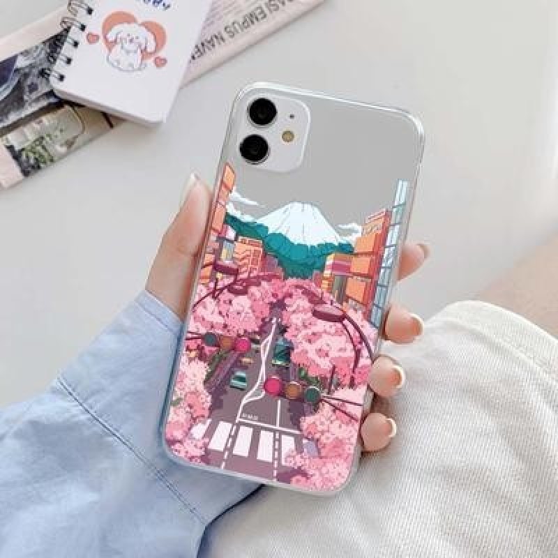 Японский эстетический прозрачный чехол Traint Moun Fuji для iPhone 14 13 12 11 Pro Max 8 7 Redmi 12C